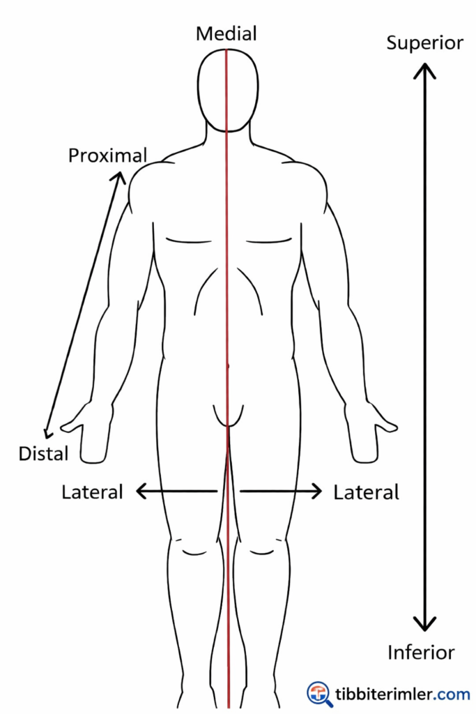Proksimal, vücuda daha yakındır; distal ise daha uzaktır.