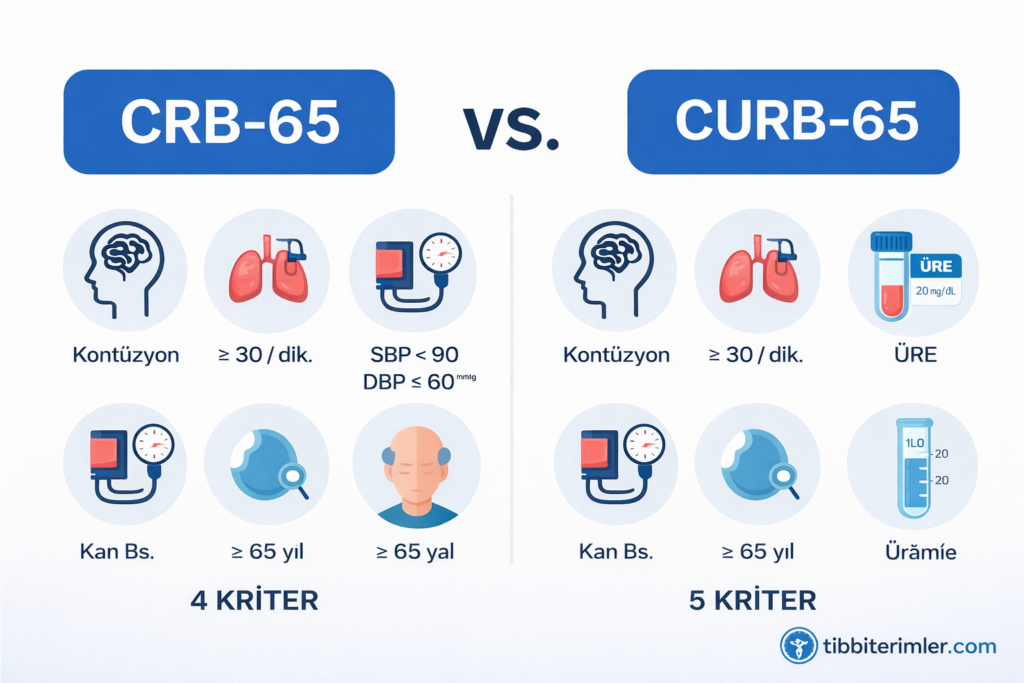 Bu yazıda CRB-65 ve CURB-65 skorları klinik kullanım, içerik ve pratik avantajları açısından karşılaştırılmaktadır.